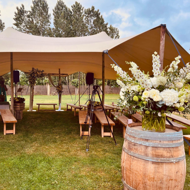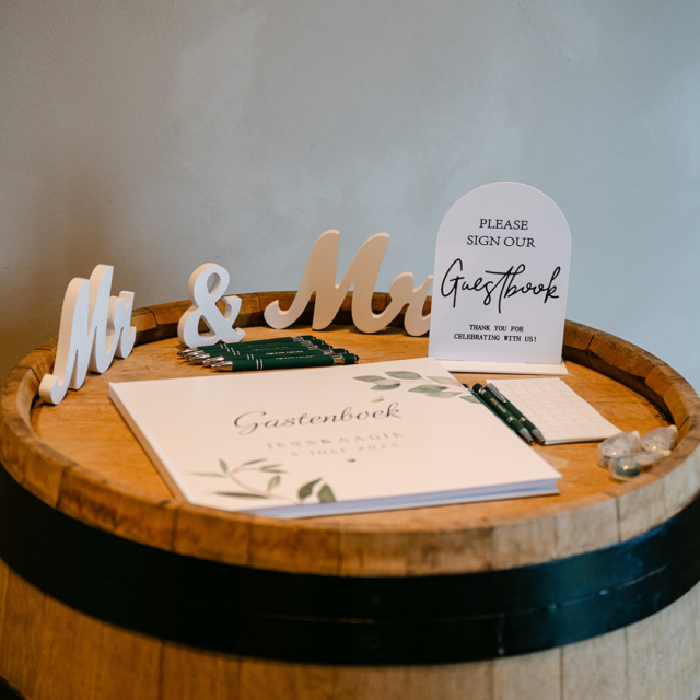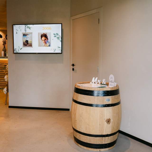 Gebruik onze wijntonnen als praattafels, decoratie of gastenboek tafel