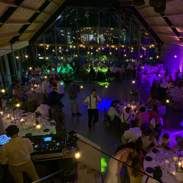 6 uplighters (sfeerverlichting op muren in de zaal) en moving head discolichten
